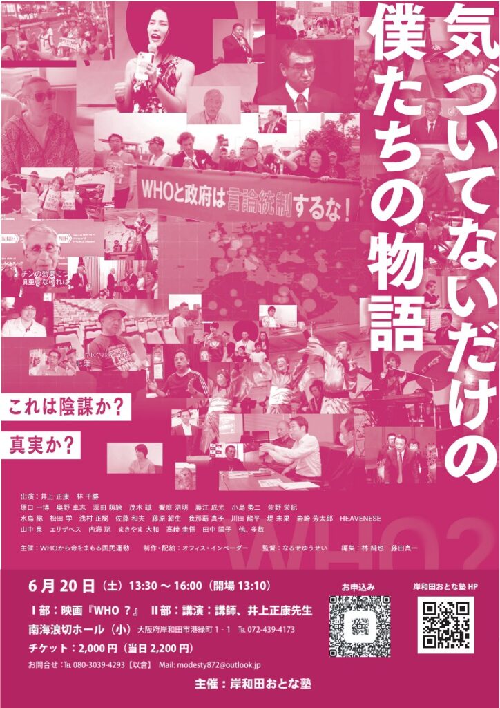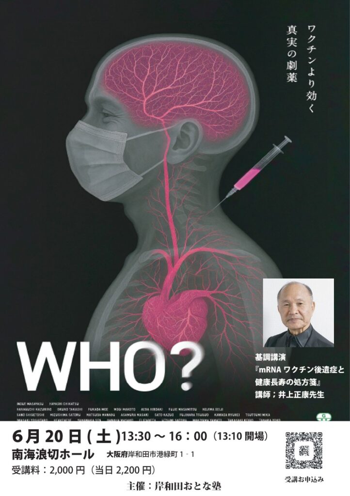 6月講座『WHO?』上映会+基調講演『mRNAワクチン後遺症と健康寿命の処方箋』講師:井上正康先生